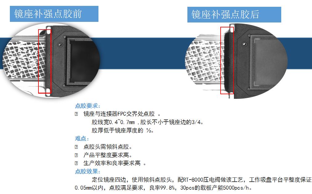 镜座与连接器FPC交界处点胶 。
